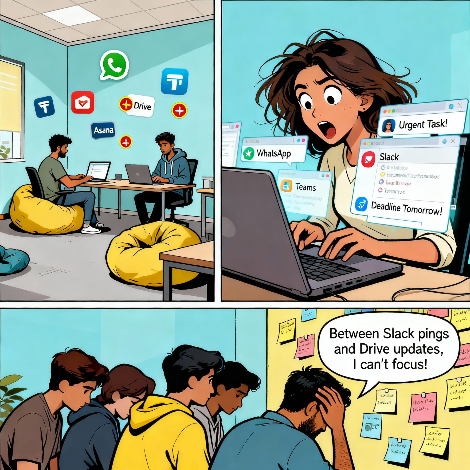 Small business teams, constantly multitasking, are most at risk. As exhaustion sets in, communication suffers: updates get delayed, tensions rise, and collaboration turns transactional instead of creative.